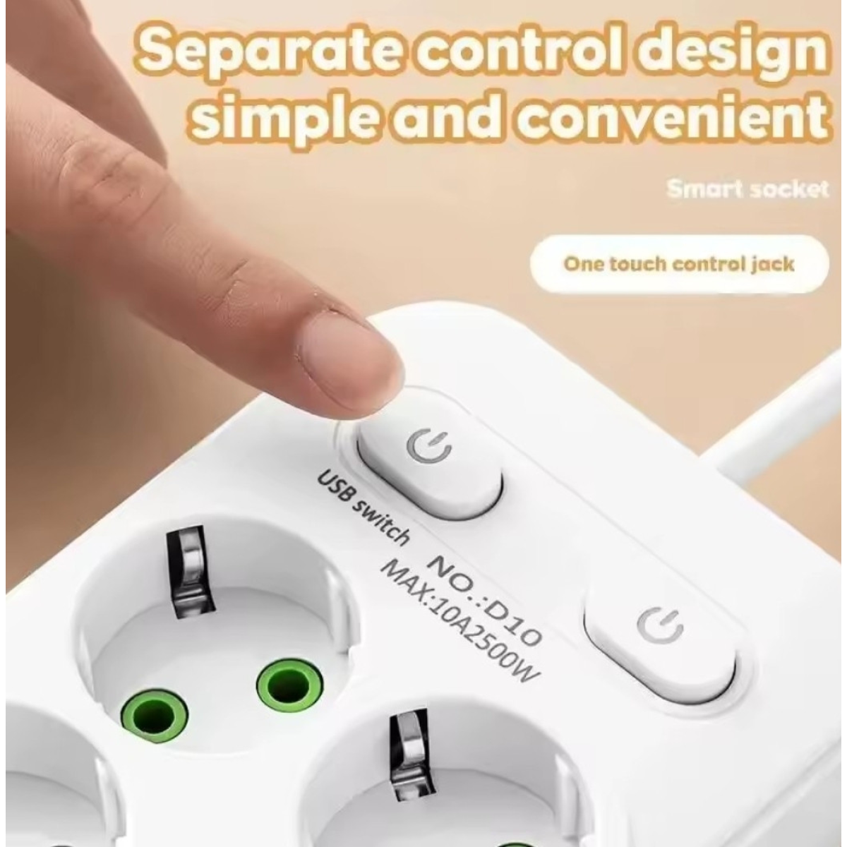 Подовжувач на 2500w з юсб на 6 розетки чорний 2м